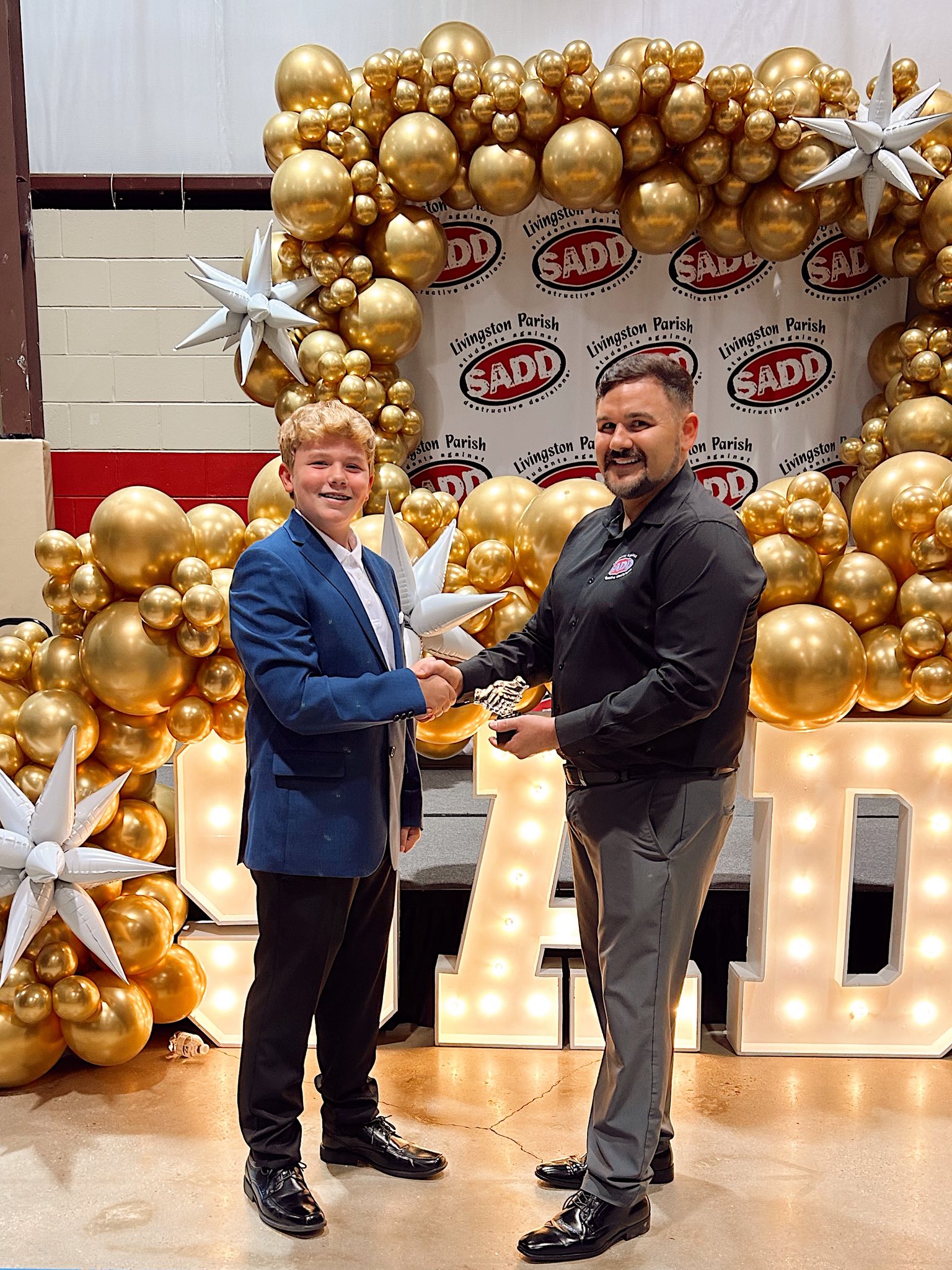 Amazing Shake 8th Grade Winner — Jake Sykora, an 8th grader from North Corbin Junior High, was named the winner of the Livingston Parish “Amazing Shake” competition. He is pictured with Livingston Parish SADD Executive Director Dylan Ivy. Sykora will represent the district at the Global Amazing Shake competition in Atlanta, Georgia, in March 2026.